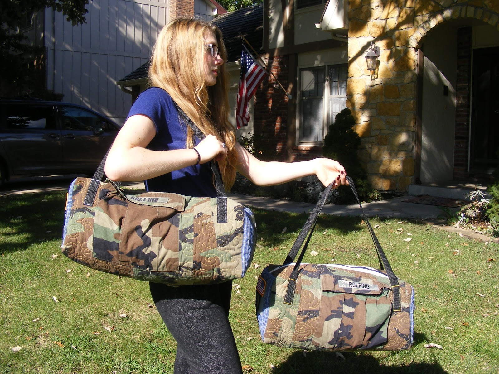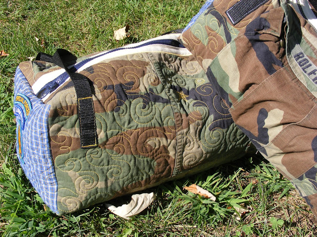 I used Rob's patches and one of his favorite shirts to make the sides of the duffel bags.
