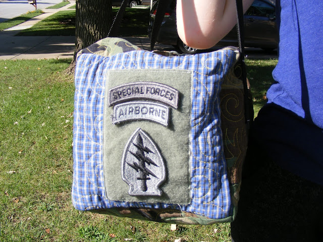 I get asked all the time why I don't take orders for Camp Follower Bags anymore. Not too long ago I got chased down in the commissary by a lady carrying one of my bags that I made 9 years ago. She was shouting "Your Tia!!!" Indeed I am. Wow, that makes my heart sing. I know many of you did not know me during the days of Flickr so you may be unfamiliar with my Bags. (you can look at my Camp Follower Bags Blog if you like. It is still live, and you will see my cute kids when we lived in Australia). I made bags from the uniforms of Servicemen (and women) for the folks who loved them. I didn't buy a bunch of old dirty uniforms and make bags from those, I only made bags from the actual uniform that that particular person had sweat (and often bled) in after the clients contacted me through my website. Each bag was totally unique. I think at my height of popularity I was making 12 completely different type bags that I had designed and created a pattern for. It was very difficult to keep up with demand with just me making them, but I hung in for a long time. My designs were being knocked off right and left. It was so sad to see something I worked so hard at being snatched away. I understand why it was happening...they were pretty awesome and I couldn't possibly sew for everyone. People would email me furious at my price point. Enraged I was charging for a product that took from 8 to 16 hours to make. First I had to figure out what the client wanted, what fabric to use with their uniforms, deconstruct the uniforms and then create something totally custom, beautiful and in most cases reversible. That's a tall order but I did it for hundreds of bags. And I did it with a glad heart.